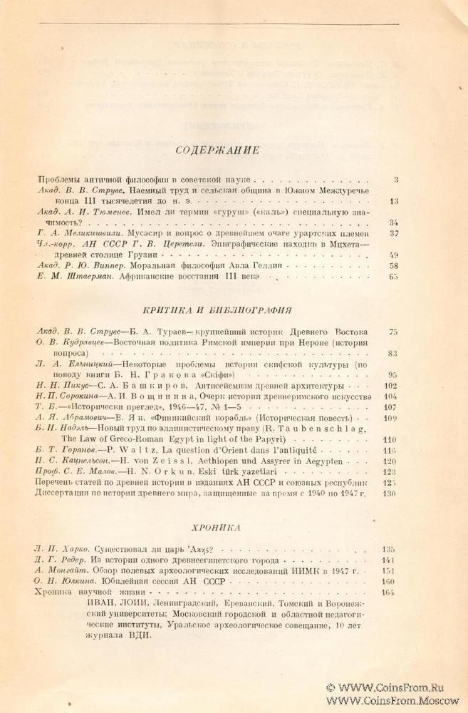 Институт Истории Академии наук СССР. Вестник древней истории № 2. Сборник статей. Издательство Академии Наук СССР. Москва. Ленинград. 1948 г. 318 страниц.