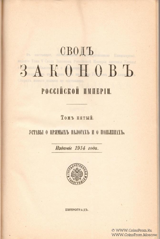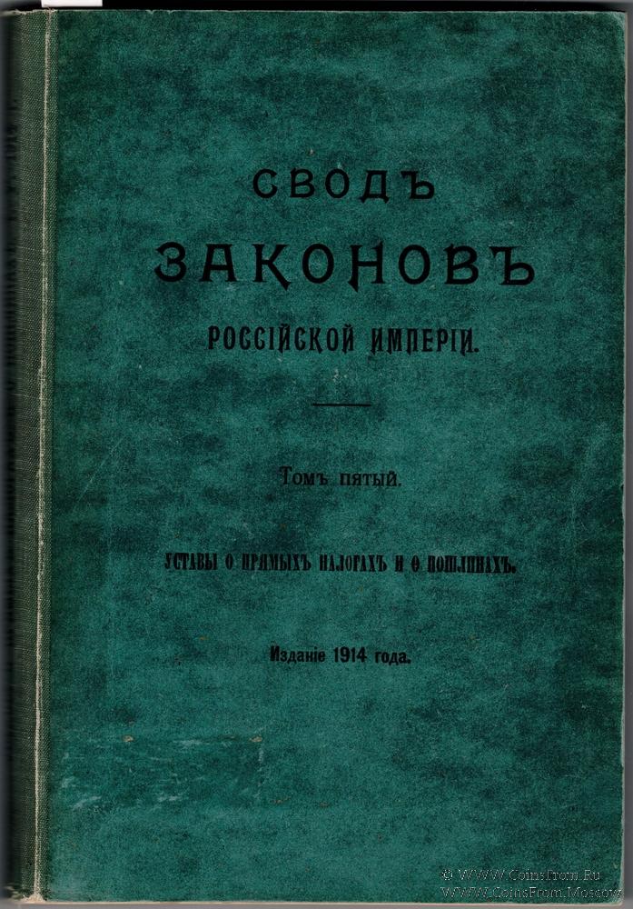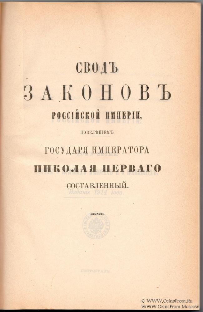 Свод законов Российской Империи повелением Государя Императора Николая Первого сотавленный. Издание 1914 года с указами, законами, таблицами налогообложения на 204 страницах.