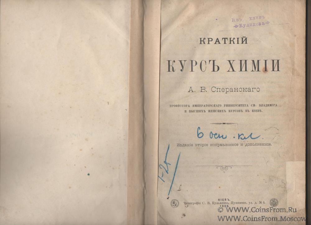 Сперанский А.В. Профессор Императорского университета Св. Владимира и высших женсчких курсов в Киеве. Издание второе исправленное и дополненное. Киев. Типография С.В. Кульженко, Пушкинская ул. д. 4. 1908 г. 295 страниц.