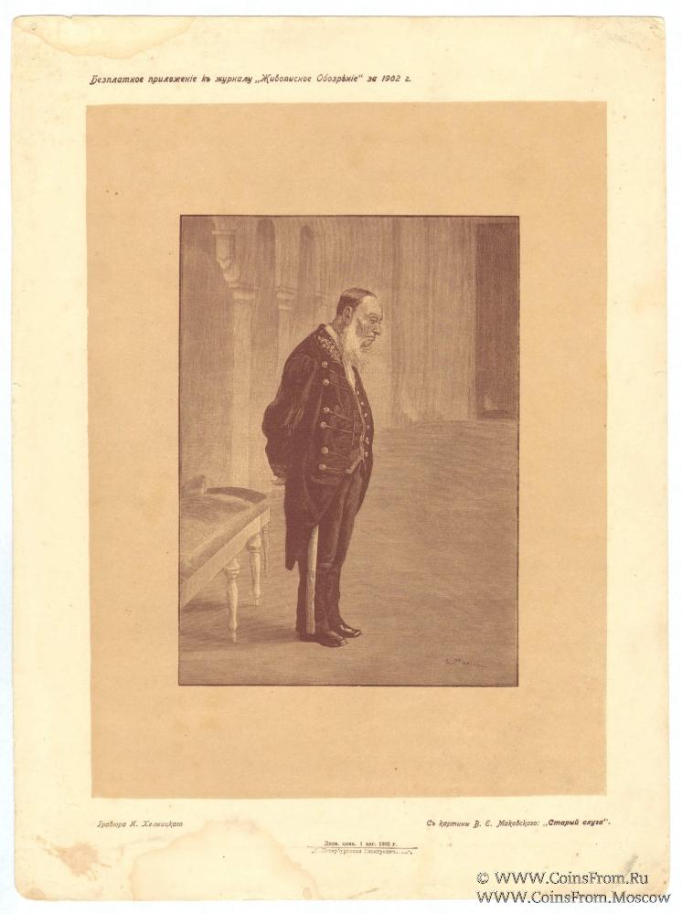 Гравюра И. Хелмицкого с картины В.Е. Маковского "Старый слуга".
