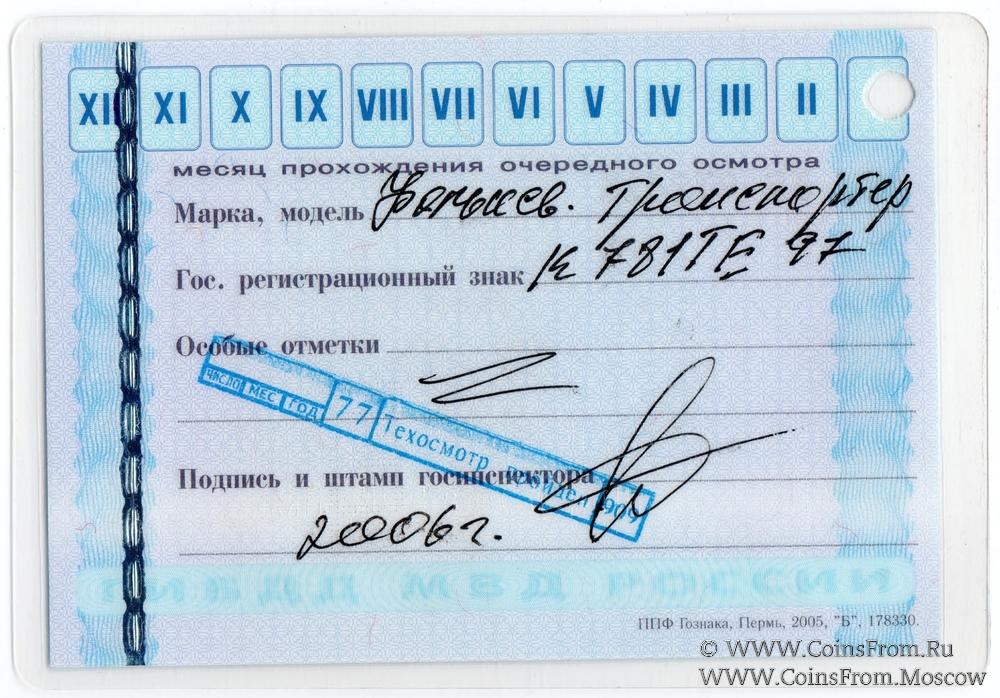 Талон технического осмотра 2006г. Москва.
