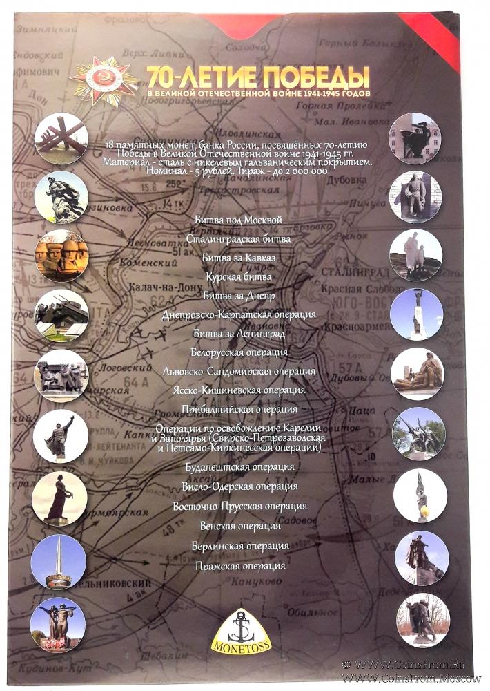 18 памятных монет баека России, посвящённых 70-летию Победы в Великой Отечественной Войне 1941-1945 гг.