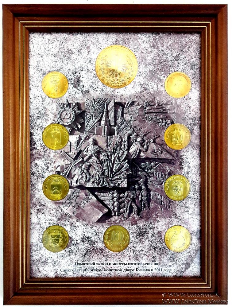 Памятный жетон и монеты изготовлены на Санкт-Петербургском монетном дворе Гознака РФ в 2011 году. Монеты из серии "Города Воинской Славы".