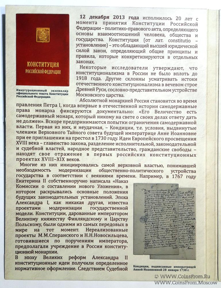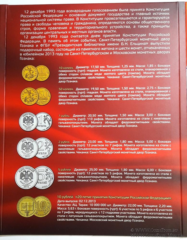 Набор разменных монет ЦБ РФ 2013 г. Жетон 20 - летие Принятия Конституции РФ 2013. СПМД.