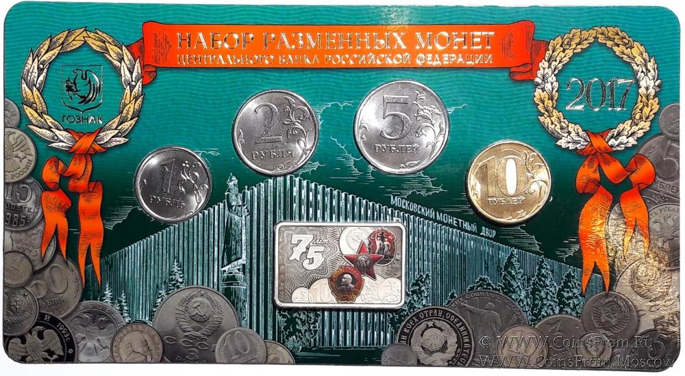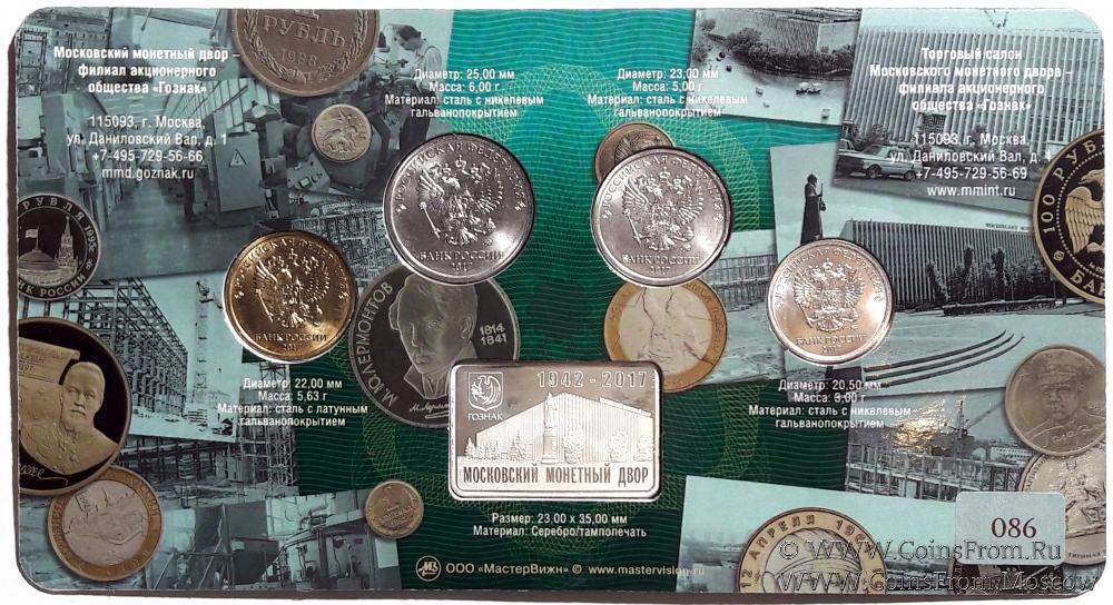 Набор разменных монет ЦБ РФ 75 лет ММД. 1942-2017г. ММД. Жетон - серебро 999.
