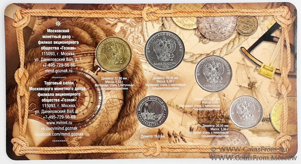 Набор разменных монет ЦБ РФ 2020 г. 200 лет. Открытие Антарктиды. ММД. Жетон белый - 19,6 мм.