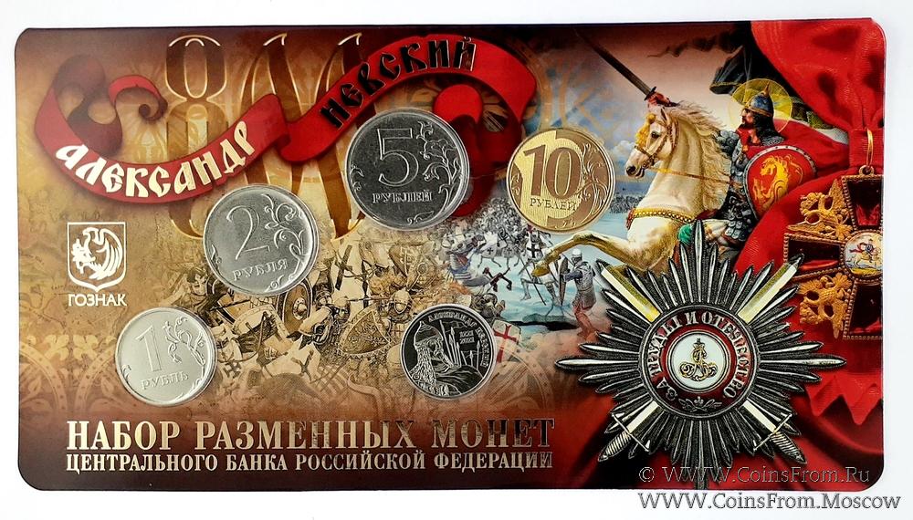 Набор разменных монет ЦБ РФ 2021 г. "Александр Невский". ММД. Жетон белый металл - 19,6 мм.
