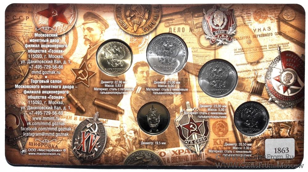 Набор разменных монет ЦБ РФ 2017 г. ФСБ. Жетон жёлтый. ММД.