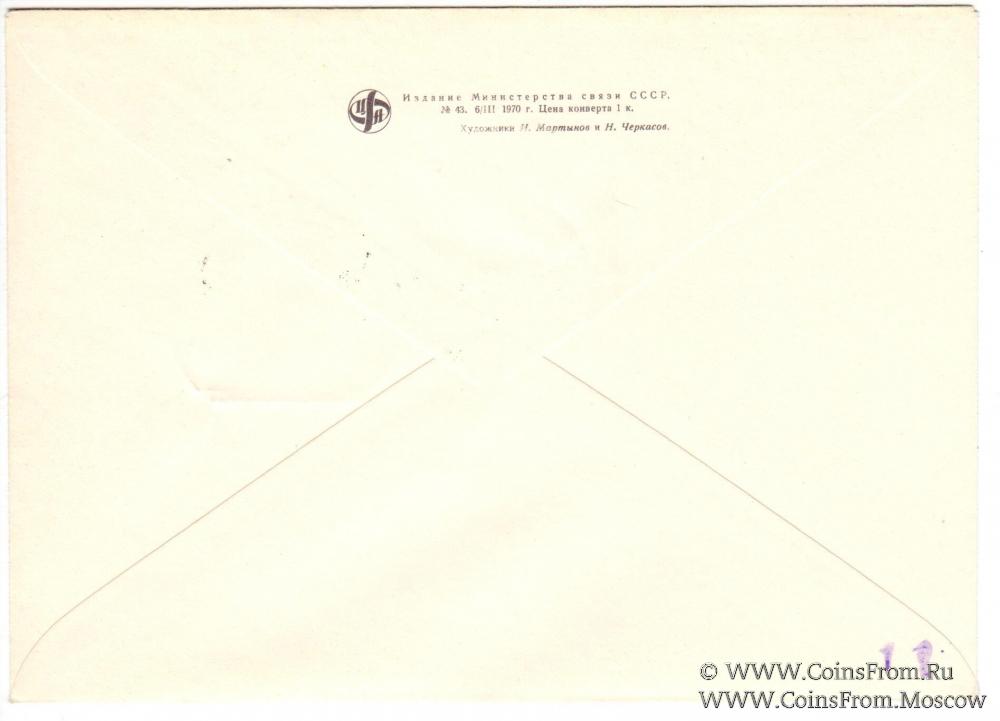 1970 г. Конверт Первого дня с оригинальной маркой. Художники: Мартынов И., Черкасов Н. Министерство связи СССР.