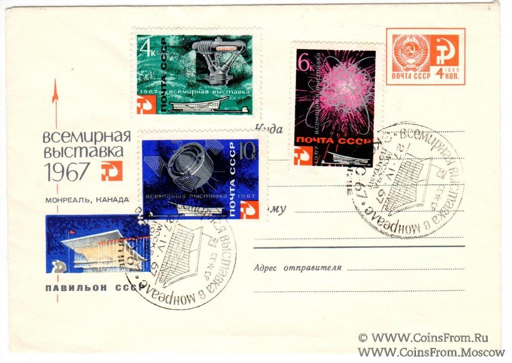 1967 г. Канада. Павильон СССР. Конверт с оригинальными марками. Художник Лесегри. Министерство связи СССР.