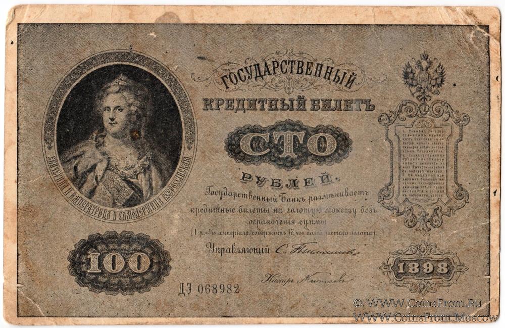 Открытка стилизована под 100 рублей 1898 г., с изображением Императрицы и Самодержицы Всероссийской Екатерины II. Открытое письмо.
