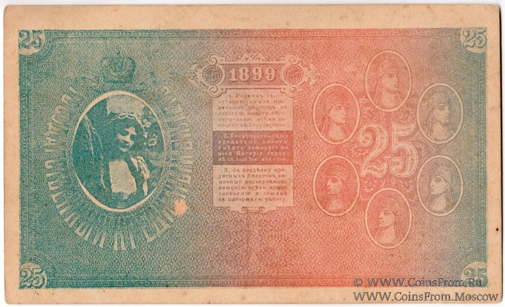 Открытка стилизована под 25 рублей 1899 г., с изображением девушки по центру (Лина Кавальери). Вариант 1: портрет слева.