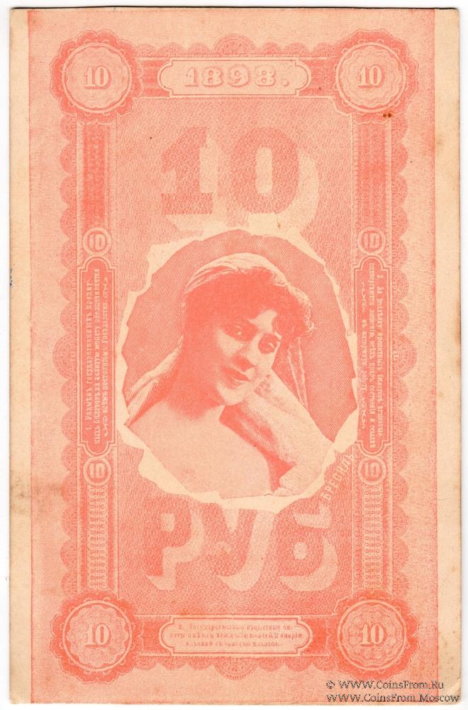 Открытка стилизована под 10 рублей 1898 г., с изображением девушки по центру (Лина Кавальери). Вариант 2: портрет вправо.