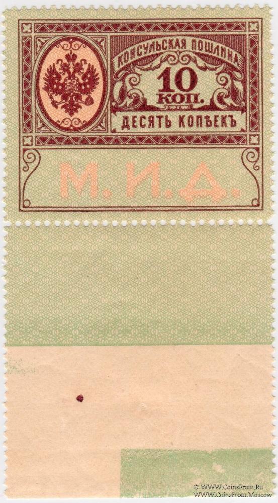 Марка консульской пошлины без даты (1913 г.). "М.И.Д.". Чистая с клеем без наклеек.
