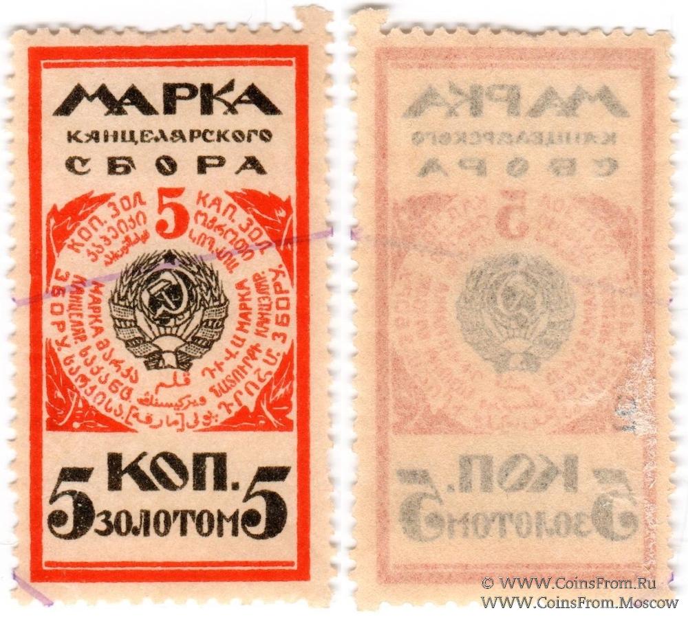 Канцелярские сборы взимались за услуги аппарата управления по выдаче различного рода справок и свидетельств. В России первые марки канцелярских сборов вышли в 1887 году.