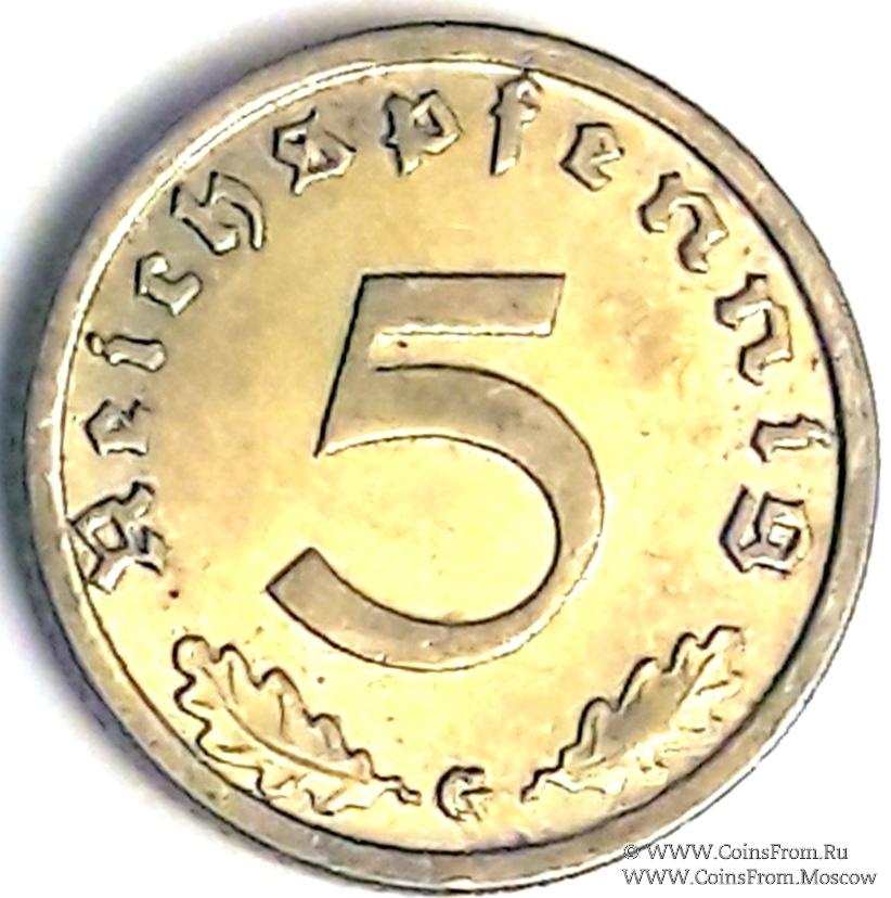5 рейхспфеннингов 1939 г. (G)