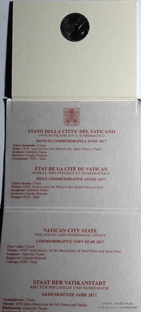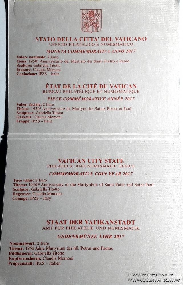 Набор монет "2 Евро" 2017 г. Ватикан.
