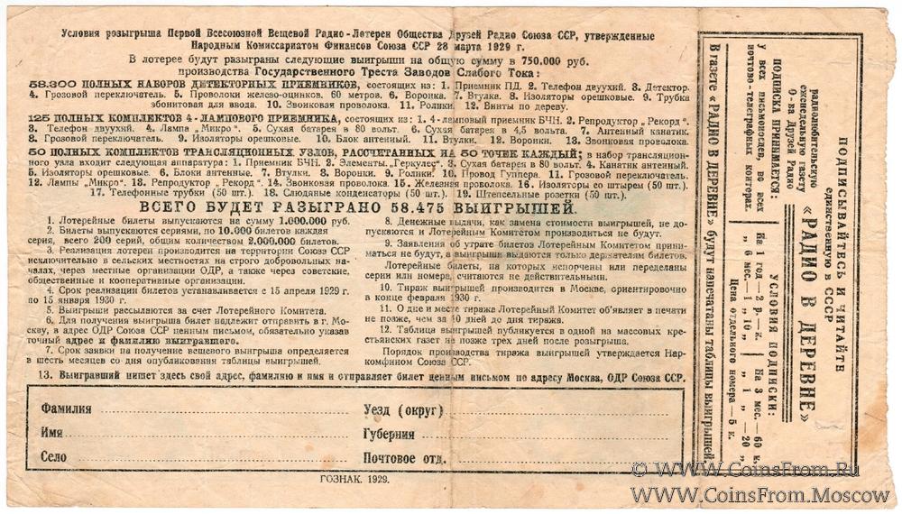 50 копеек 1929 г. РАДИО-ЛОТЕРЕЯ