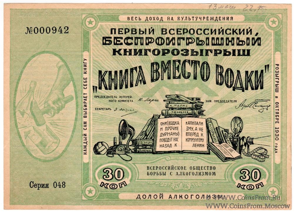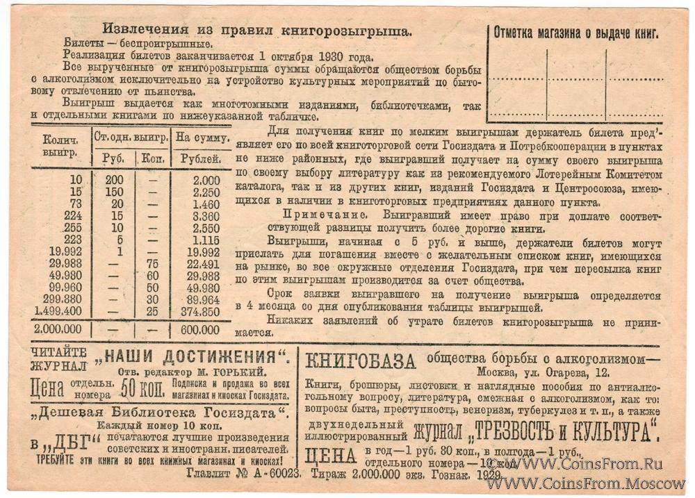 30 копеек 1929 г. КНИГОРОЗЫГРЫШ