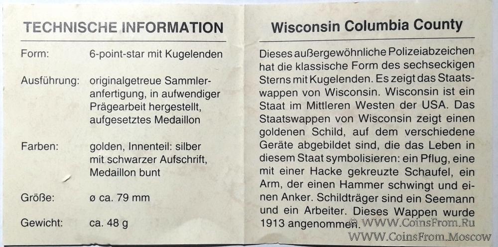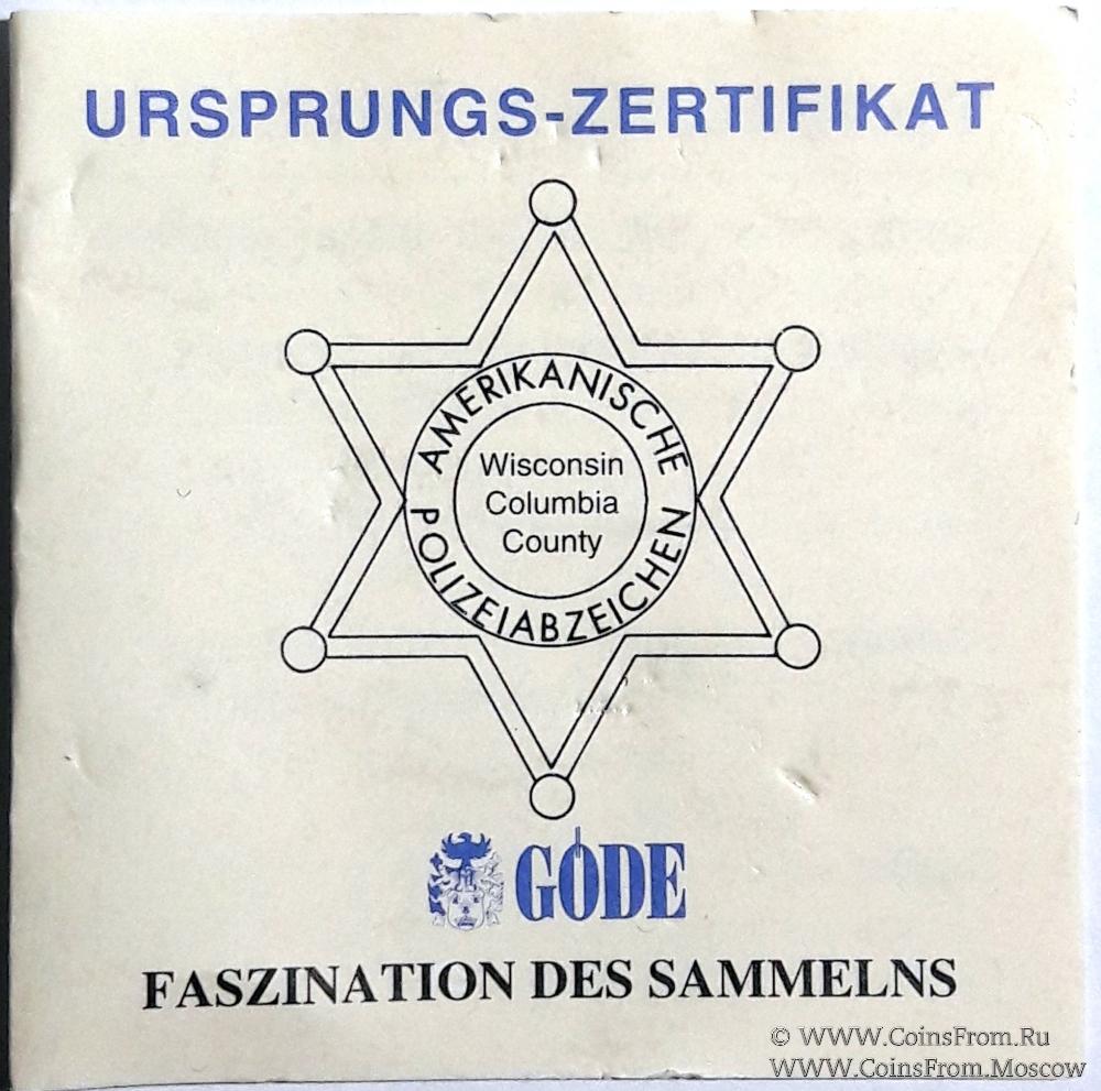 Жетон полиции. Штат Колумбия. США. Коллекционная сертифицированная копия.