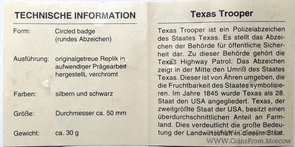 Жетон полиции.Техас. США. Коллекционная сертифицированная копия.