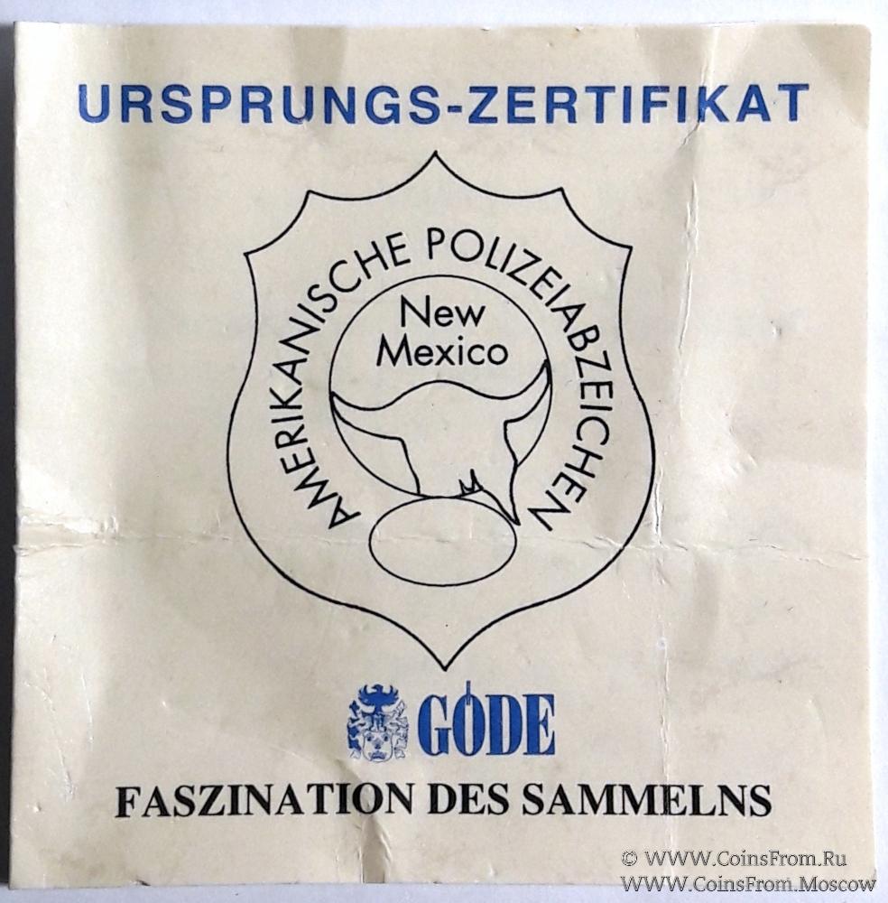 Жетон полиции.Штат Нью Мексико. США. Коллекционная сертифицированная копия.