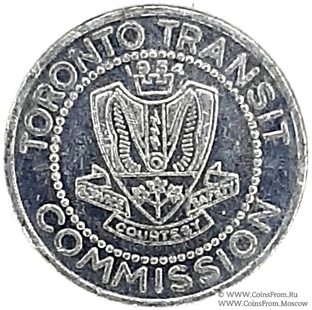Аверс: надпись по кругу Toronto Transit Commission. В центре герб в виде щита, увенчанного короной. Ниже щита на девизной ленте: Service Courtesy Safety (обслуживание вежливость безопасность). Клейма монетного двора нет.