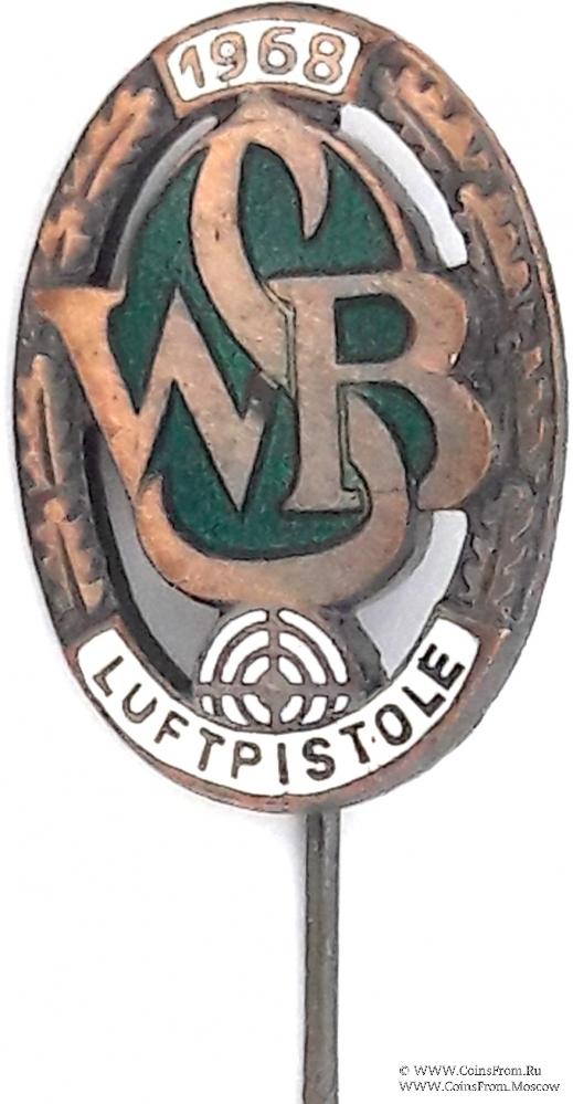 Значок стрелковой ассоциации из пневматического пистолета ГДР. Германия.