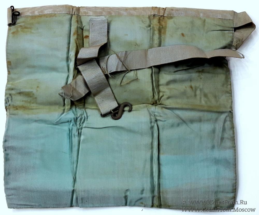 Напуск треугольный оторочен голубым шелком шириной 350 мм;