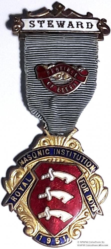 Знак STEWARD ROYAL MASONIC INSTITUTION FOR BOYS. – Королевский Масонский благотворительный институт для мальчиков.