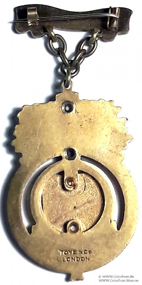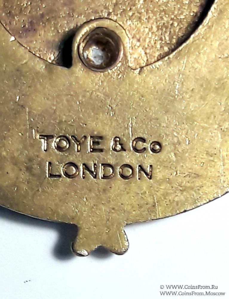Страна: Англия. Материал: основной металл, покрытие, эмаль. Клейма: на знаке TOYE&Co, LONDON. Выпуск: Лондон. Год выпуска: 1954. Форма: значок на подвеске.