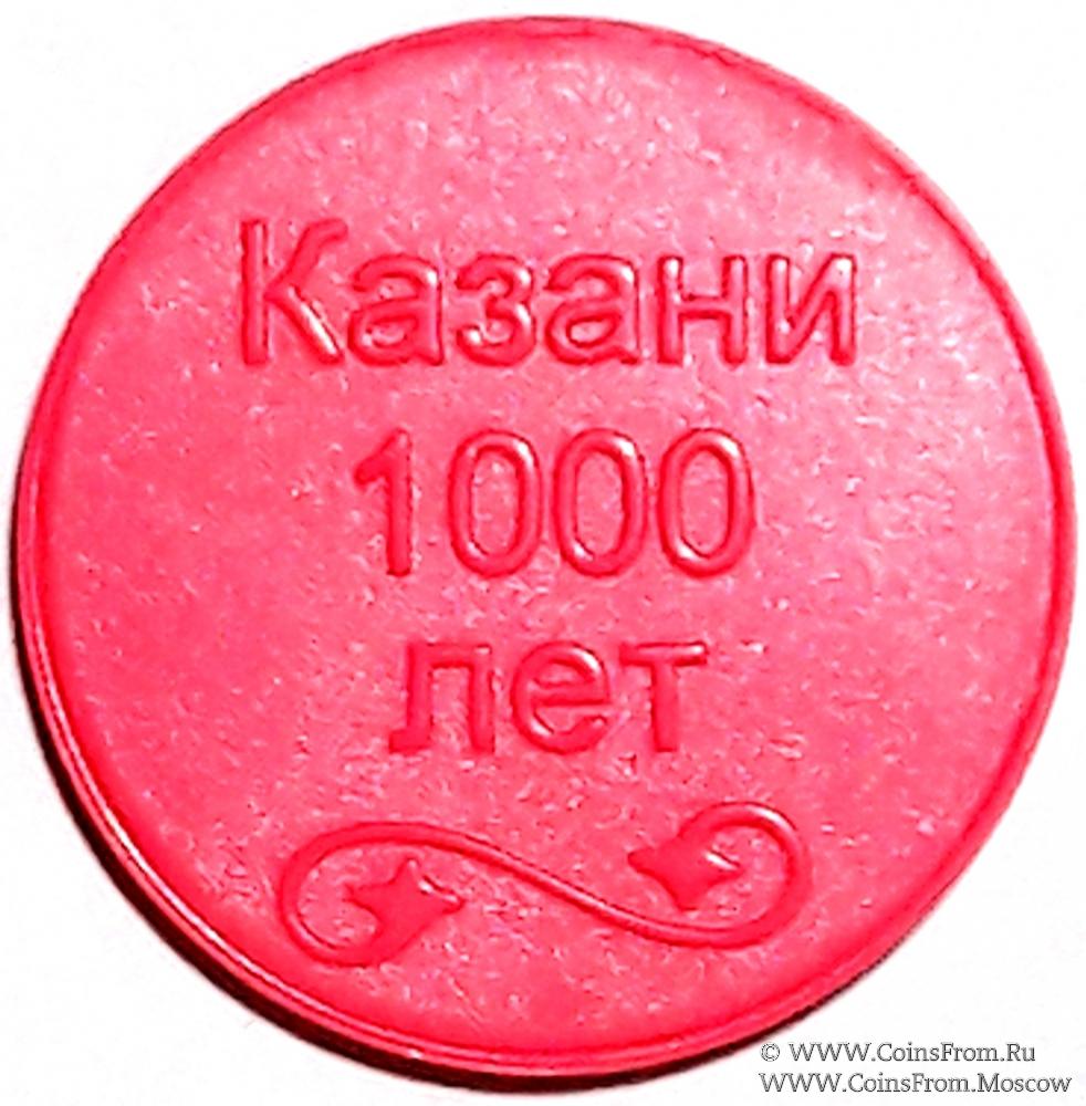 На одной стороне надпись "1000 лет Казани", на оборотной стороне — логотип предприятия "Метроэлектротранс".