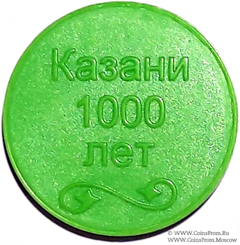 На одной стороне надпись "1000 лет Казани", на оборотной стороне — логотип предприятия "Метроэлектротранс".