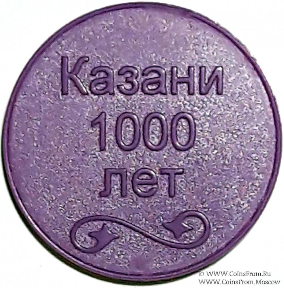 На одной стороне надпись "1000 лет Казани", на оборотной стороне — логотип предприятия "Метроэлектротранс".