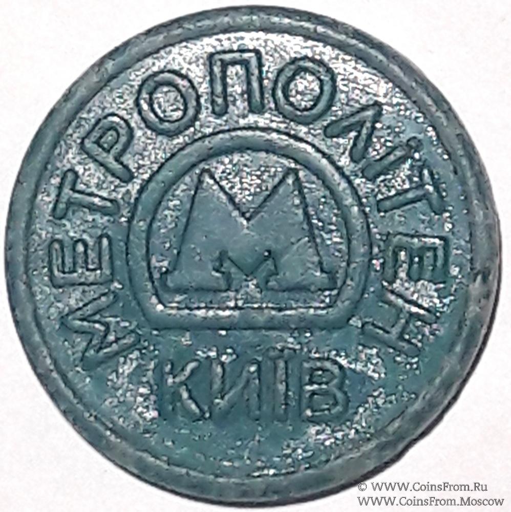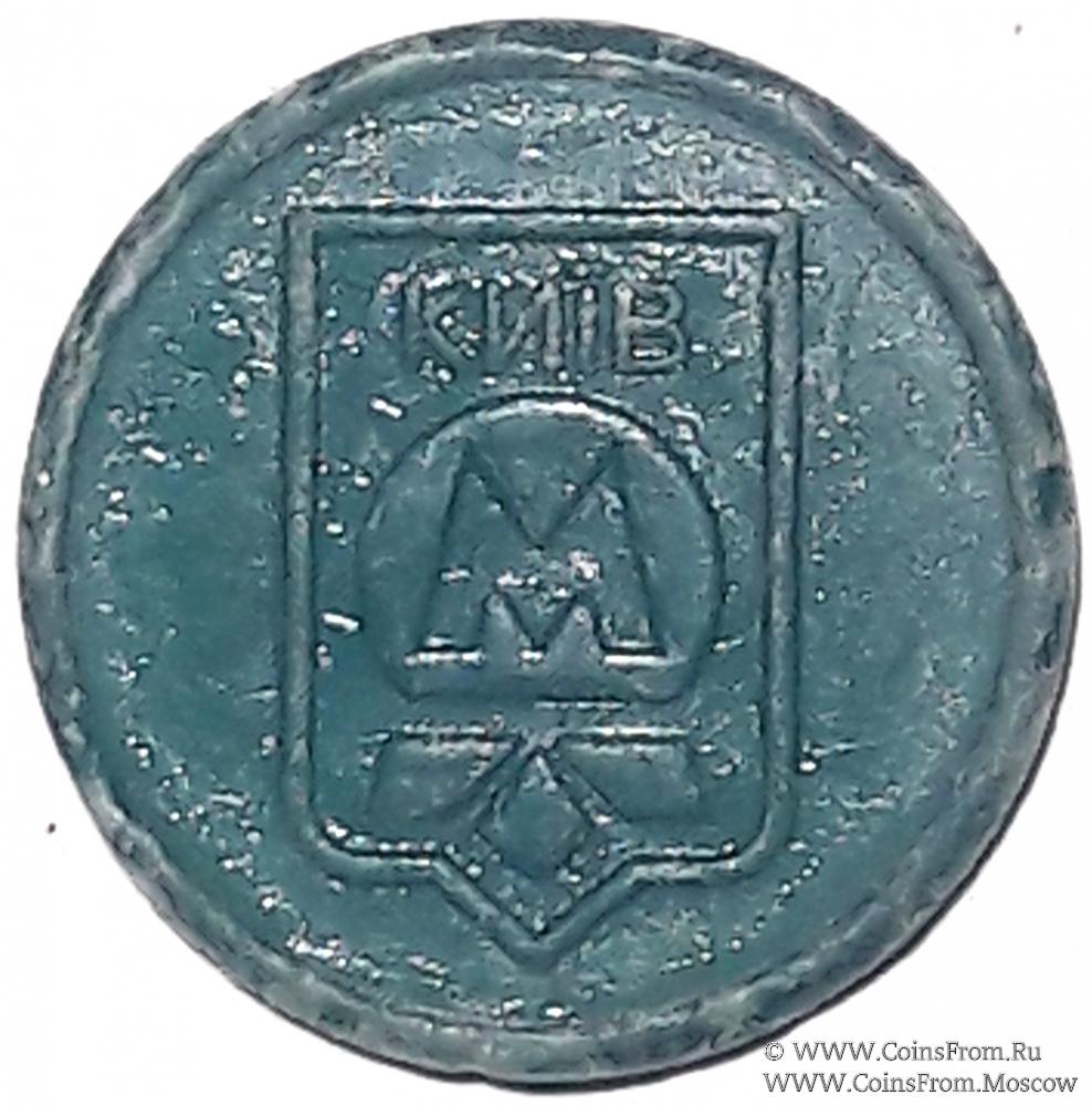 Жетон Киевского метрополитена. Сине-зелёный пластик. Диаметр 25 мм.