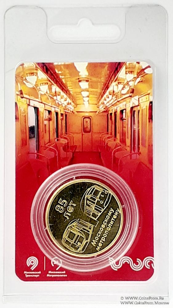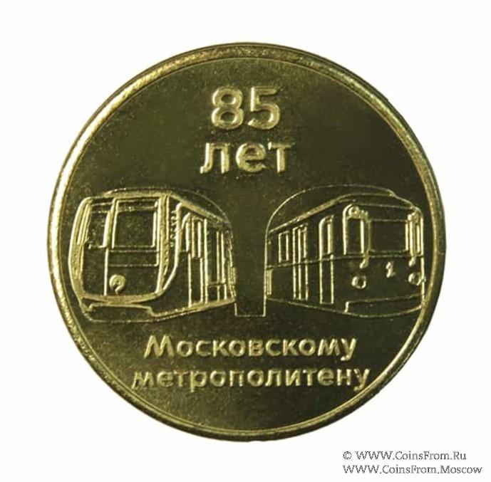 Жетон "85 лет Московскому метрополитену", ограниченная серия. Московский транспорт. Московский метрополитен. Жетон. Латунь. Размер: 32,6 мм х 2 мм.