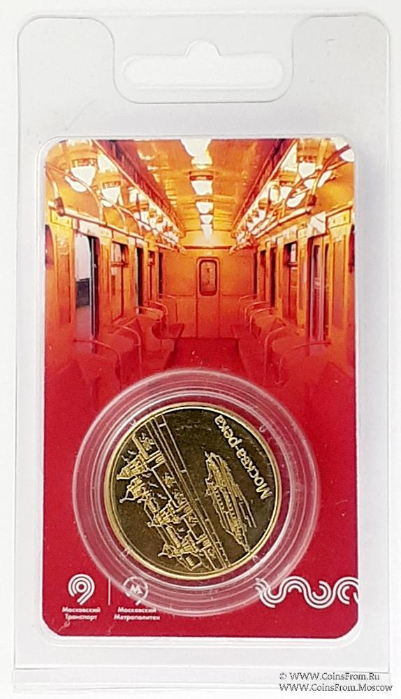 Жетон "Москва-река", ограниченная серия. Московский транспорт. Московский метрополитен. Жетон. Латунь. Размер: 32,6 мм х 2 мм.