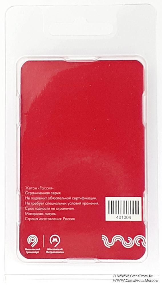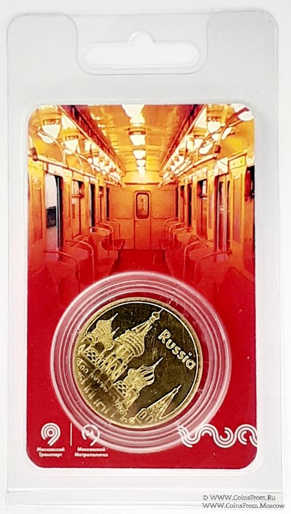 Жетон "Russia", ограниченная серия. Московский транспорт. Московский метрополитен. Жетон. Латунь. Размер: 32,6 мм х 2 мм.