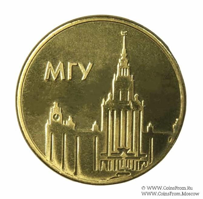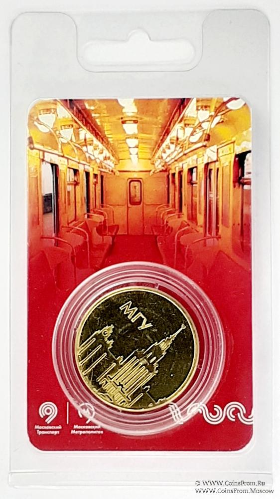 Жетон "МГУ", ограниченная серия. Московский транспорт. Московский метрополитен. Жетон. Латунь. Размер: 32,6 мм х 2 мм.