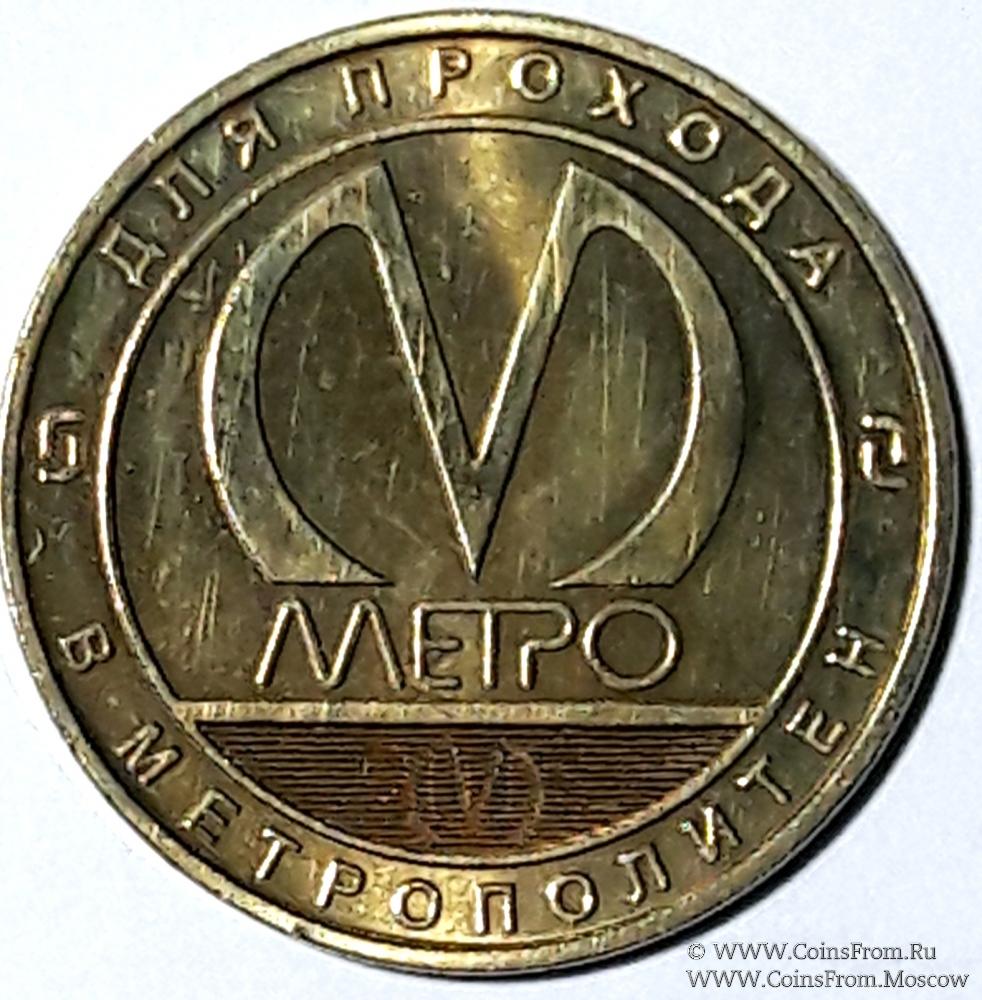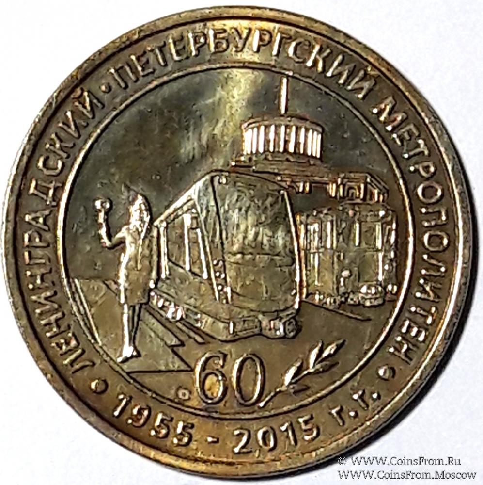 Жетон метрополитена. Санкт-Петербург. "60 лет метрополитену". Металл желтого цвета. Диаметр 23 мм. Без упаковки.