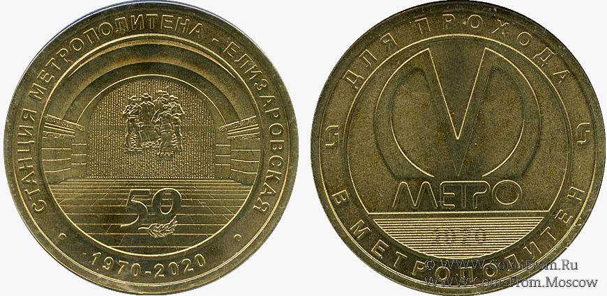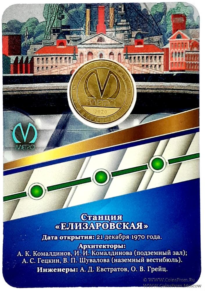 Юбилейный жетон "Станция метрополитена - "Елизаровская". 50 лет". Упаковка - блистер. Выпуск 21 декабря 2020 г. СПМД. Петербургский метрополитен.