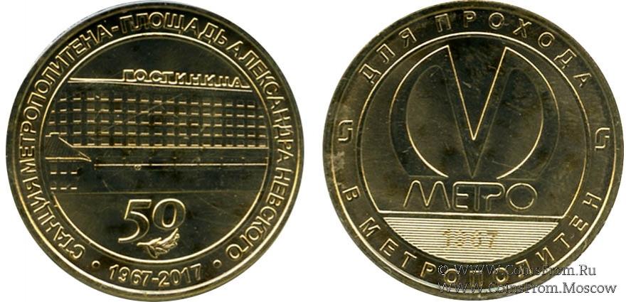 Юбилейный жетон к 50-летию станции "Площадь Александра Невского" (открыта 3.11.1967 г.). Упаковка - блистер.