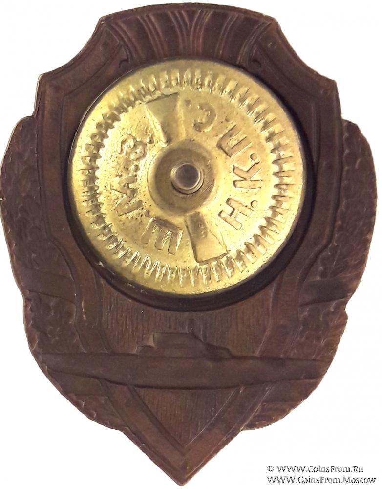 Материал: латунь, эмаль, винт. Маркировка на закрутке ШМЗ НКПС. Размер 46Х36 мм.