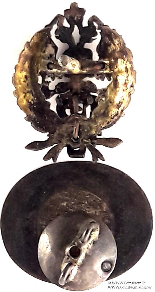 Клейма: На аверсе знака женская голова в кокошнике повёрнутая вправо, точка сзади, 84-в овале, в круге голова повёрнутая вправо на закрутке фрачника, АБ на закрутке знака.
