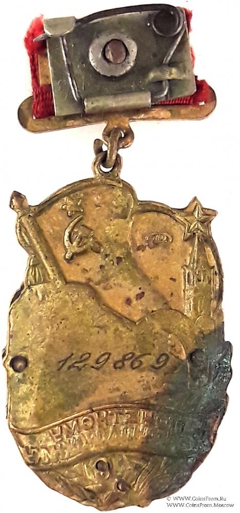 Материал6 латунь, эмаль, подвеска, Винт (застёжка). Размер 28Х64 мм. Знак номерной № 129869.