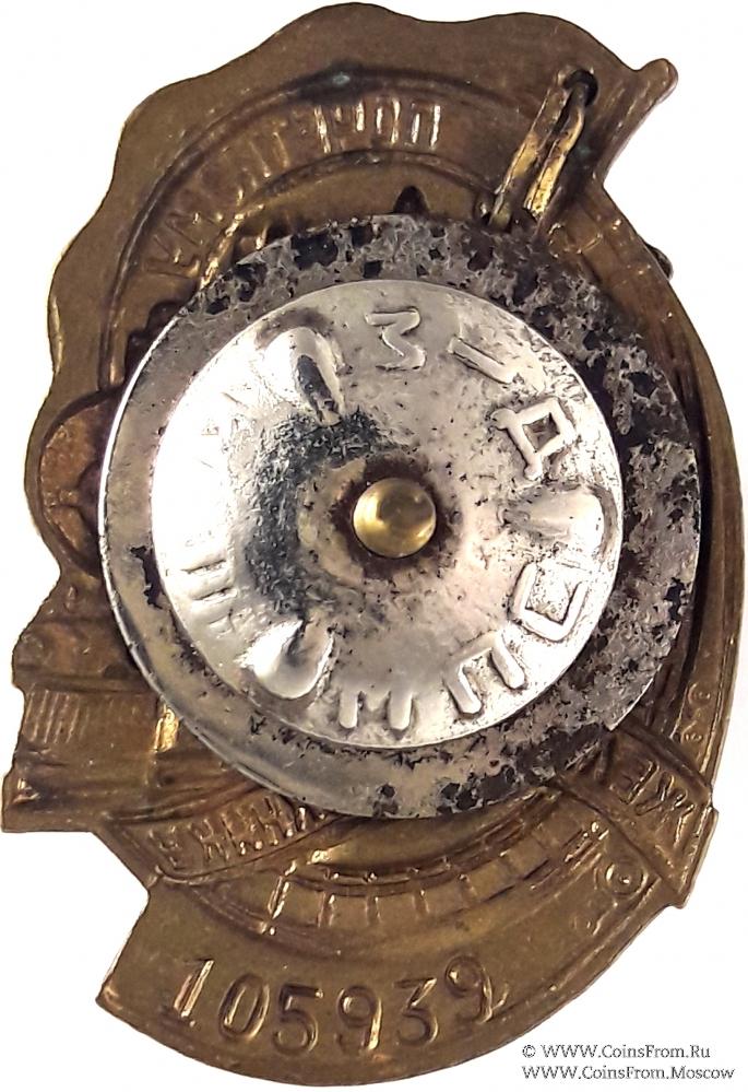 Материал: бронза, эмаль, контррельеф, оксидирование, позолота, винт. Размер 30Х45мм. Знак номерной №105939.