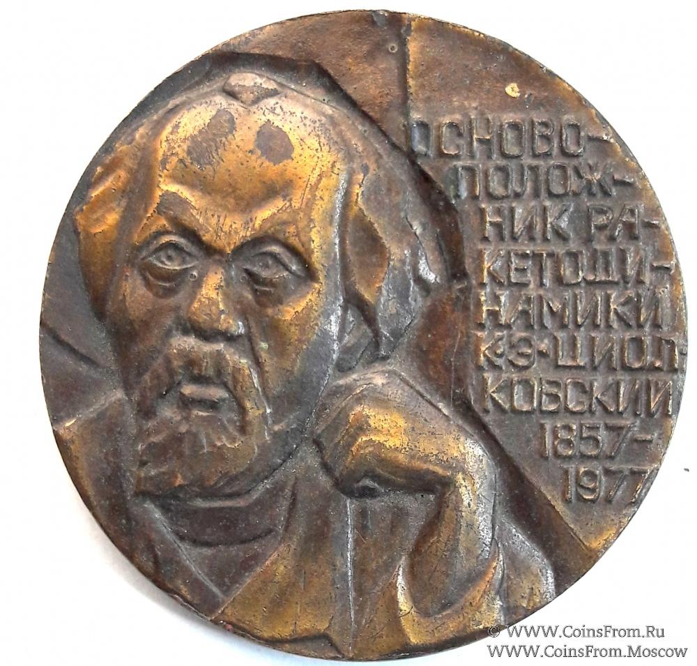 Памятная настольная медаль "Основоположник ракетодинамики Циолковский". 1857 - 1977 Калуга. Томпак. Диаметр 45,5 мм. Толщина 5 мм. Вес 58,85 г.