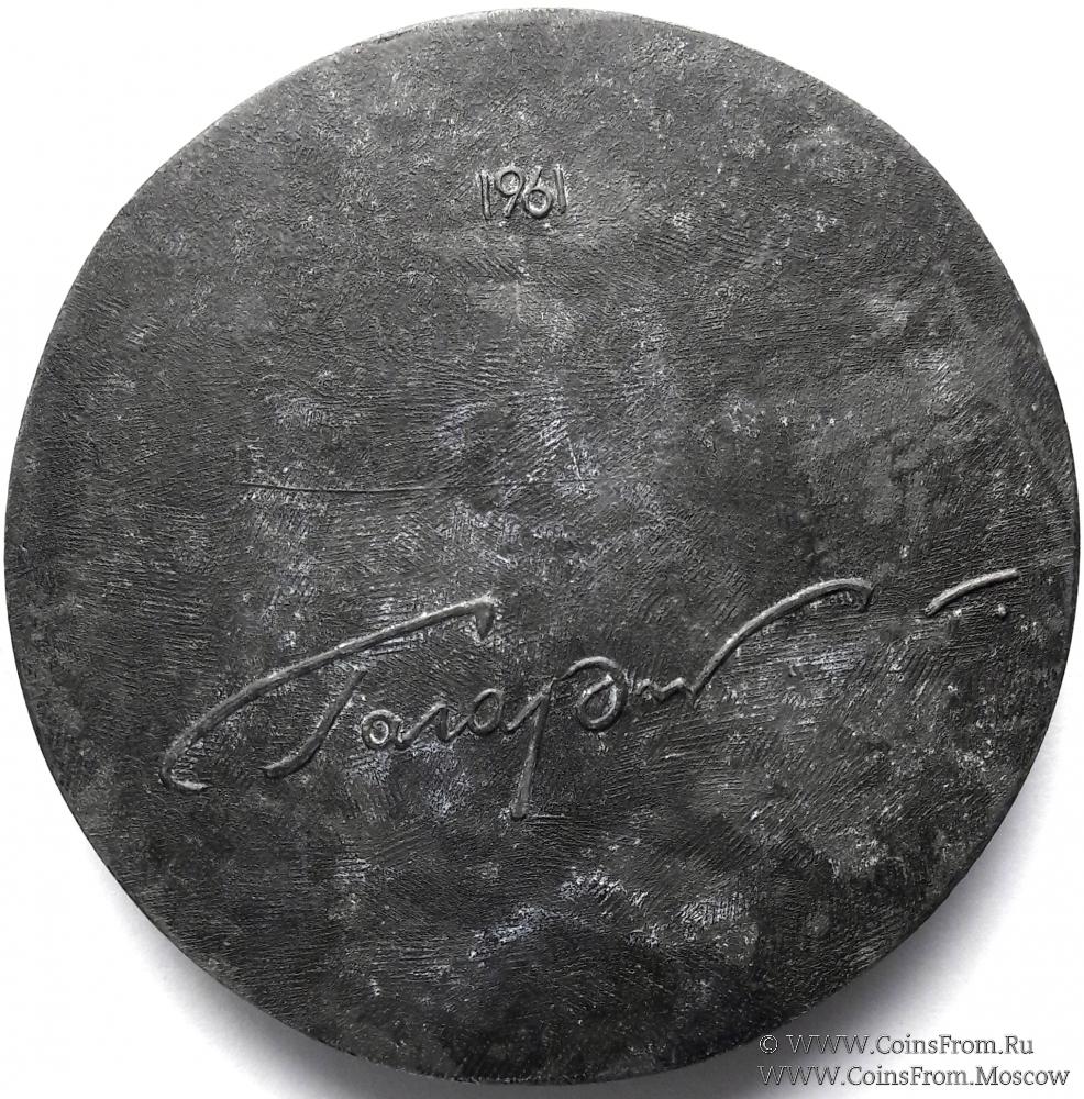 Настольная медаль "Ю. А. Гагарин". 1961 г. Тяжёлый металл. Диаметр 74,5 мм. Толщина 3-10 мм.