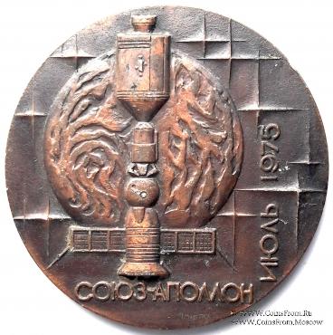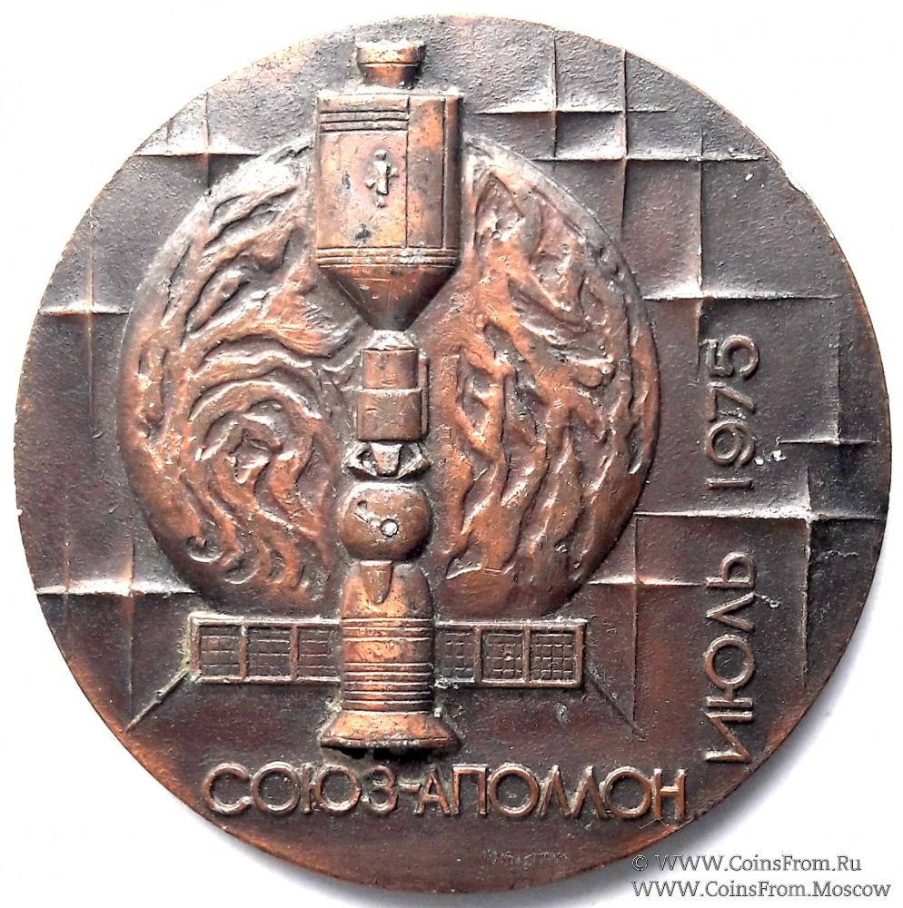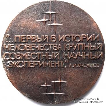 Памятная настольная медаль "Союз - Апполон." (1975). Лёгкий сплав. Диаметр 60 мм. Толщина 4 мм. Вес 24,61 г.