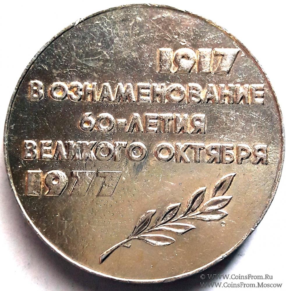 Памятная настольная медаль В ознаменовании 60 летия Великого Октября1917- 1977. Алюминий, Диаметр 45 мм. Толщина 5 мм. Вес 23,76 г.